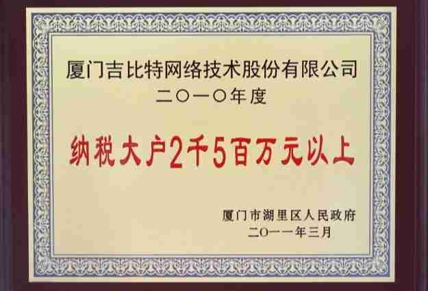 日前,,公司被廈門市湖里區人民政府授予了“2010年納稅大戶”的榮譽稱號,,充分體現了公司一貫合法納稅、、、、誠信經營的良好企業社會公民行為。。